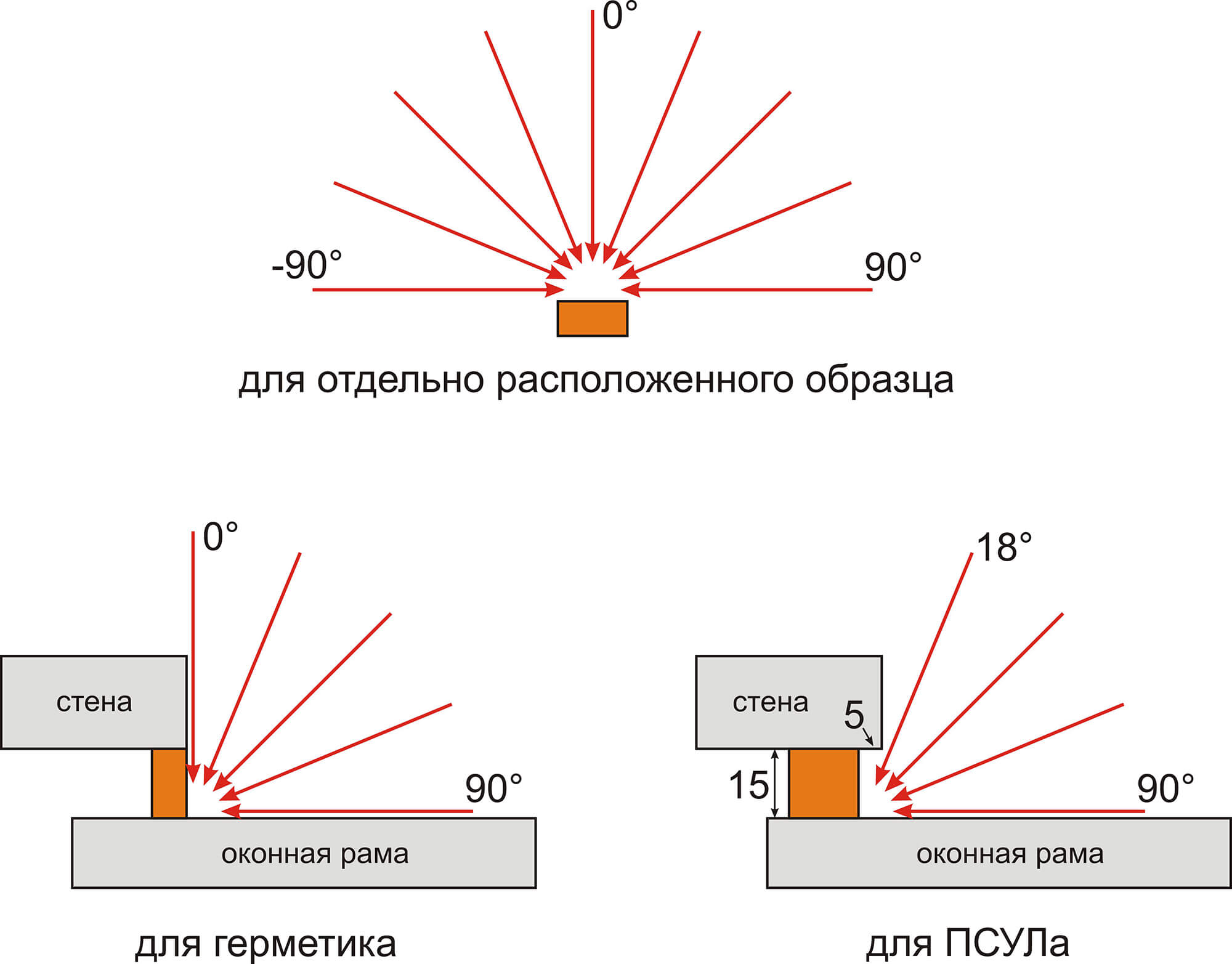 1 Указанная ориентация соответствует расположению герметика с левой стороны проема; при расположении с правой стороны максимум смещается на юго-запад – запад.